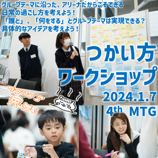 アリーナのわくわくを、みんなのワクワクに。「暮らしの中でのアリーナのつかい方」や「アリーナでの過ごし方」をみんなで考える、4回目のつかい方ワークショップを開催しました。
