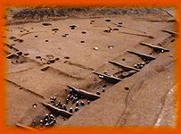 概要下橋下(しもはしか)遺跡では、1956(昭和31)年~1959(昭和34)年にかけて行われたほ場整備の際に発見され多量の土器が採集されています。また、1998(平成10)年のほ場整備の際には調査が行われました。調査の結果、弥生時代・古墳時代の竪穴住居、古墳時代後期~奈良時代の溝をはじめ、非常に多くの遺構・遺物が見つかっています。 弥生時代の竪穴住居跡は、平面形が5.5m×5.5mの四隅の丸い方形で、弥生時代後期初頭の土器が南西隅に集中して見つかりました。また、弥生時代の墓である方形周溝墓の一部の可能性がある溝も見つかり、溝の中層から上でほぼ全面にわたって大量に土器が出土しました。横倒しの状態もしくは上部が破損しているものの正立の状態で出土したものが大半で、多くの土器が完全な形に復元できました。弥生時代中期後半の時期のものです。 古墳時代の竪穴住居は、平面形が5.0m×4.6mの四隅の丸い方形でした。はっきりとした柱穴は確認できませんでしたが、出土した土器は古墳時代中期前半のものです。