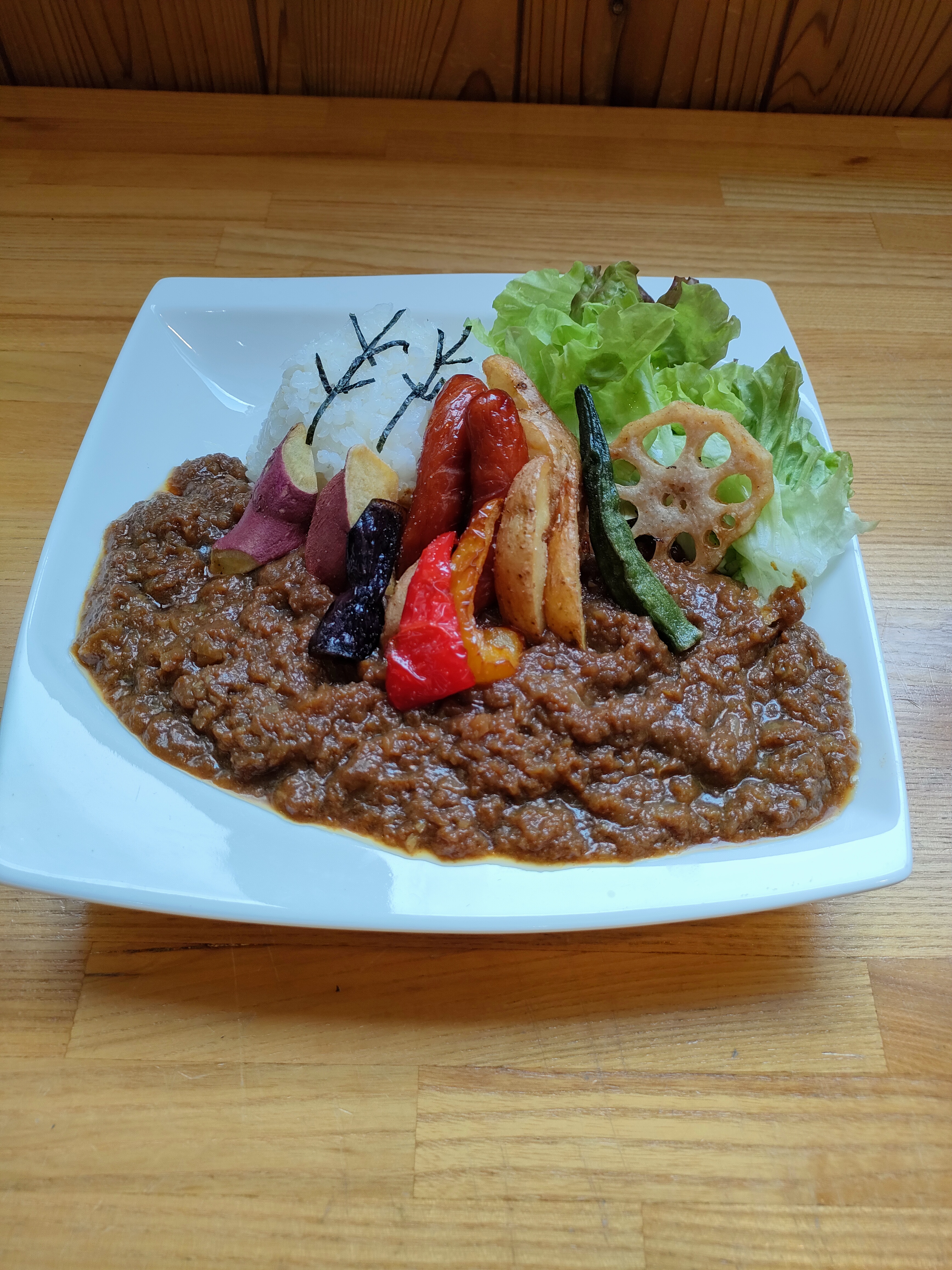 水々しいトロトロのナスとトロトロに煮込んだ牛すじの旨みたっぷりなカレーです。辛味は一切入っていませんが、スパイシーで、満足出来ます。辛口にも変更出来ます。